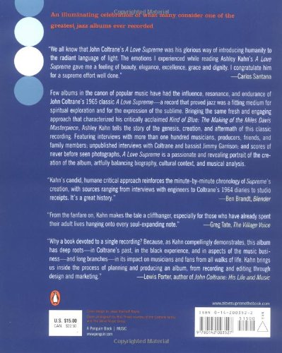 Few albums in the canon of popular music have had the influence, resonance, and endurance of John Coltrane's 1965 classic A Love Supreme-a record that proved jazz was a fitting medium for spiritual exploration and for the expression of the sublime. Bringing the same fresh and engaging approach that characterized his critically acclaimed Kind of Blue: The Making of the Miles Davis Masterpiece, Ashley Kahn tells the story of the genesis, creation, and aftermath of this classic recording. Featuring interviews with more than one hundred musicians, producers, friends, and family members; unpublished interviews with Coltrane and bassist Jimmy Garrison; and scores of never-before-seen photographs, A Love Supreme balances biography, cultural context, and musical analysis in a passionate and revealing portrait.