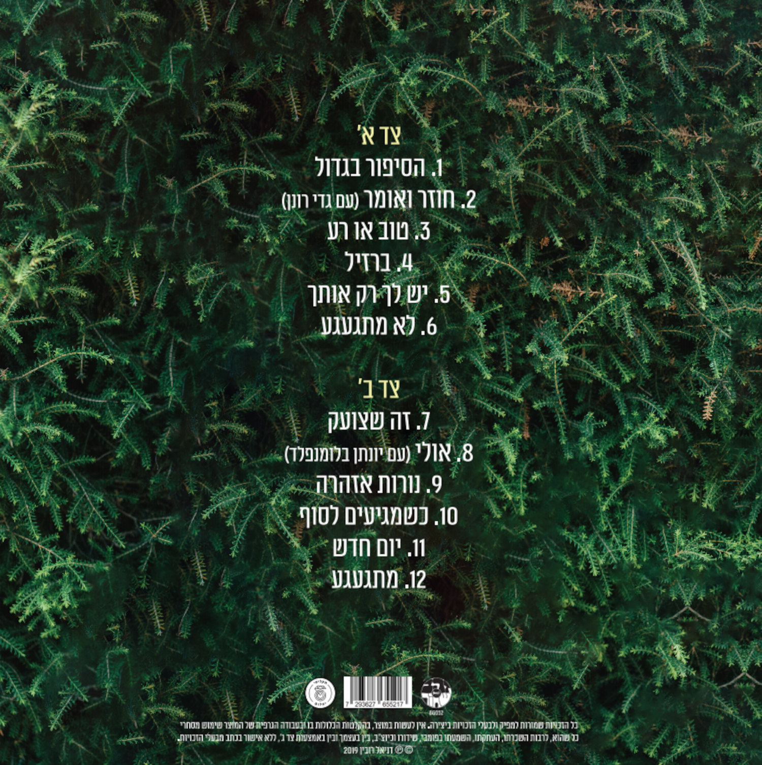 רשימת שירים: צד א' 1. הסיפור בגדול 2. חוזר ואומר (עם גדי רונן) 3. טוב או רע 4. ברזיל 5. יש לך רק אותך 6. לא מתגעגע צד ב' 1. זה שצועק 2. אולי (עם יונתן בלומנפלד) 3. נורות האזהרה 4. כשמגיעים לסוף 5. יום חדש 6. מתגעגע