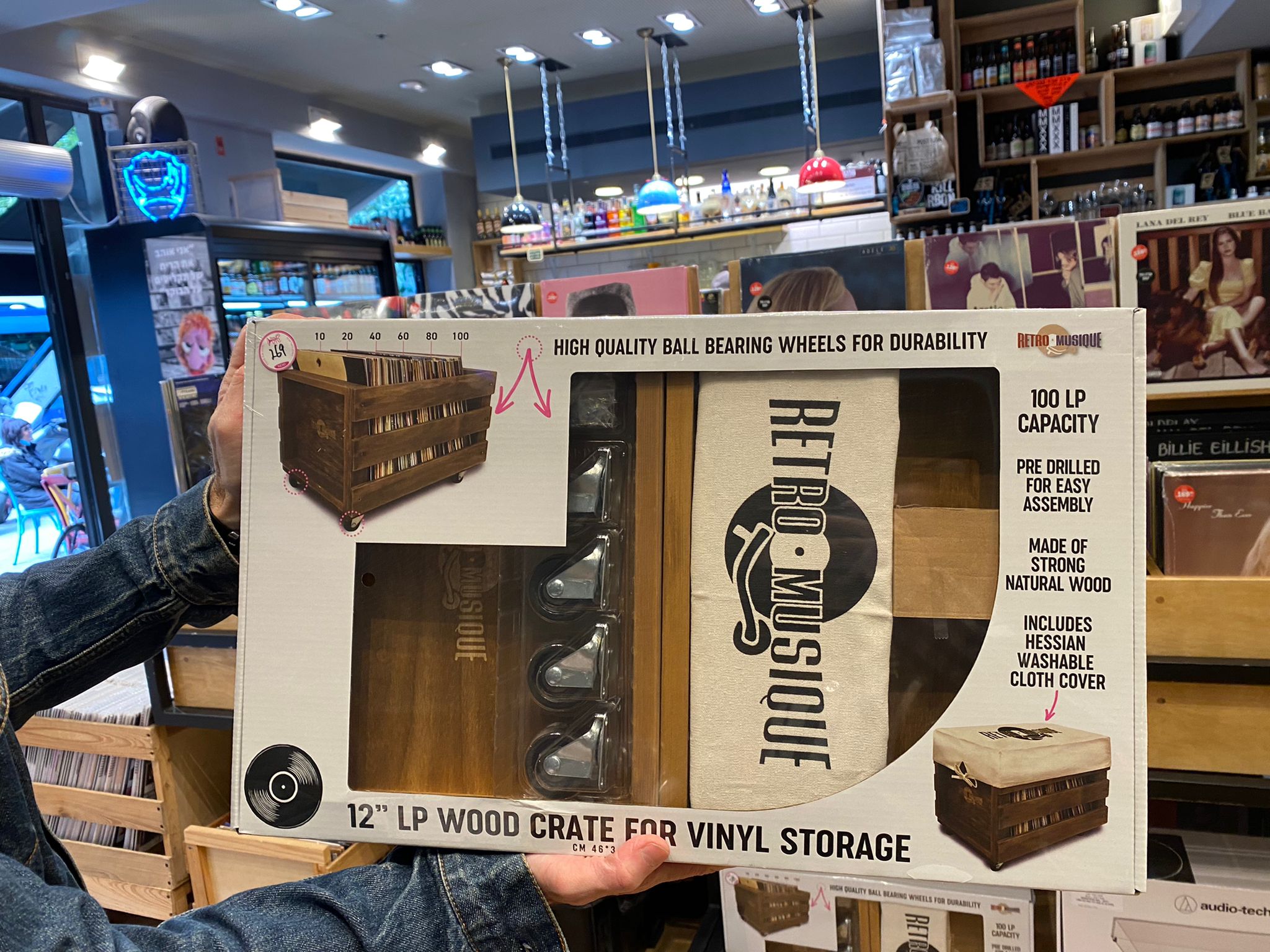 ארגז רטרו לאחסון תקליטים עם מכסה בד