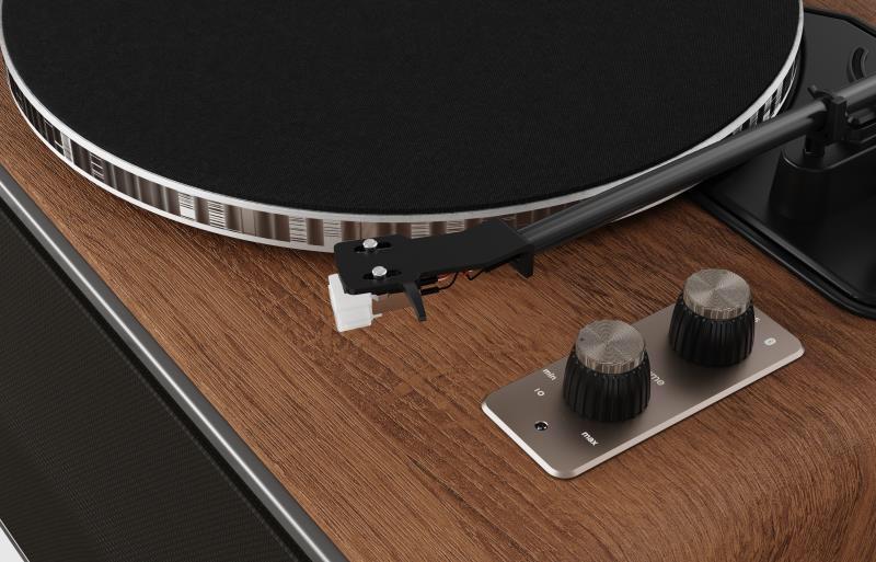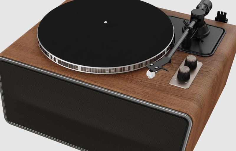 פטיפון מוגבר מבית סאפה הכולל רמקולים מובנים בעצמה של 80W.