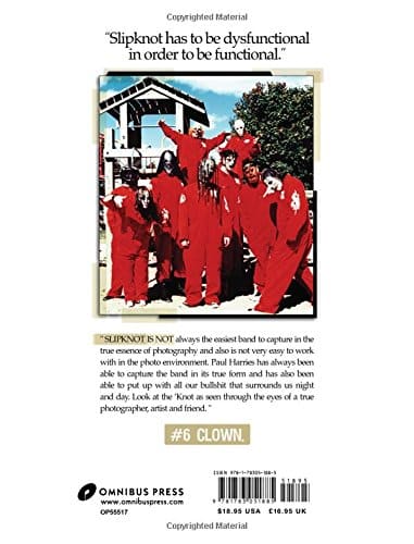 Following a hugely successful touring exhibition throughout 2011-12, Paul Harries, Britain's pre-eminent rock photographer, has now selected the best of his stunning Slipknot photographs for a new book.Paul has enjoyed unparalleled access to this most extraordinary band for almost 15 years. Their ground-breaking metal music and amazing visual presence have combined to make Slipknot an incredible success. And Paul has been up close for the ride. "Slipknot is not always the easiest band to capture in the true essence of photography and also not very easy to work with in the photo environment," admits Shawn Crahan, aka Slipknot's Clown. "Paul Harries has always been able to capture the band in its true form and has also been able to put up with all our bullshit that surrounds us night and day. Look at 'the 'Knot' as seen through the eyes of a true photographer, artist and friend." "It has been great to be a part of the Slipknot circus," says Paul. "Such a visual and exciting band like this is a gift for a photographer like me, although they are often unpredictable!"