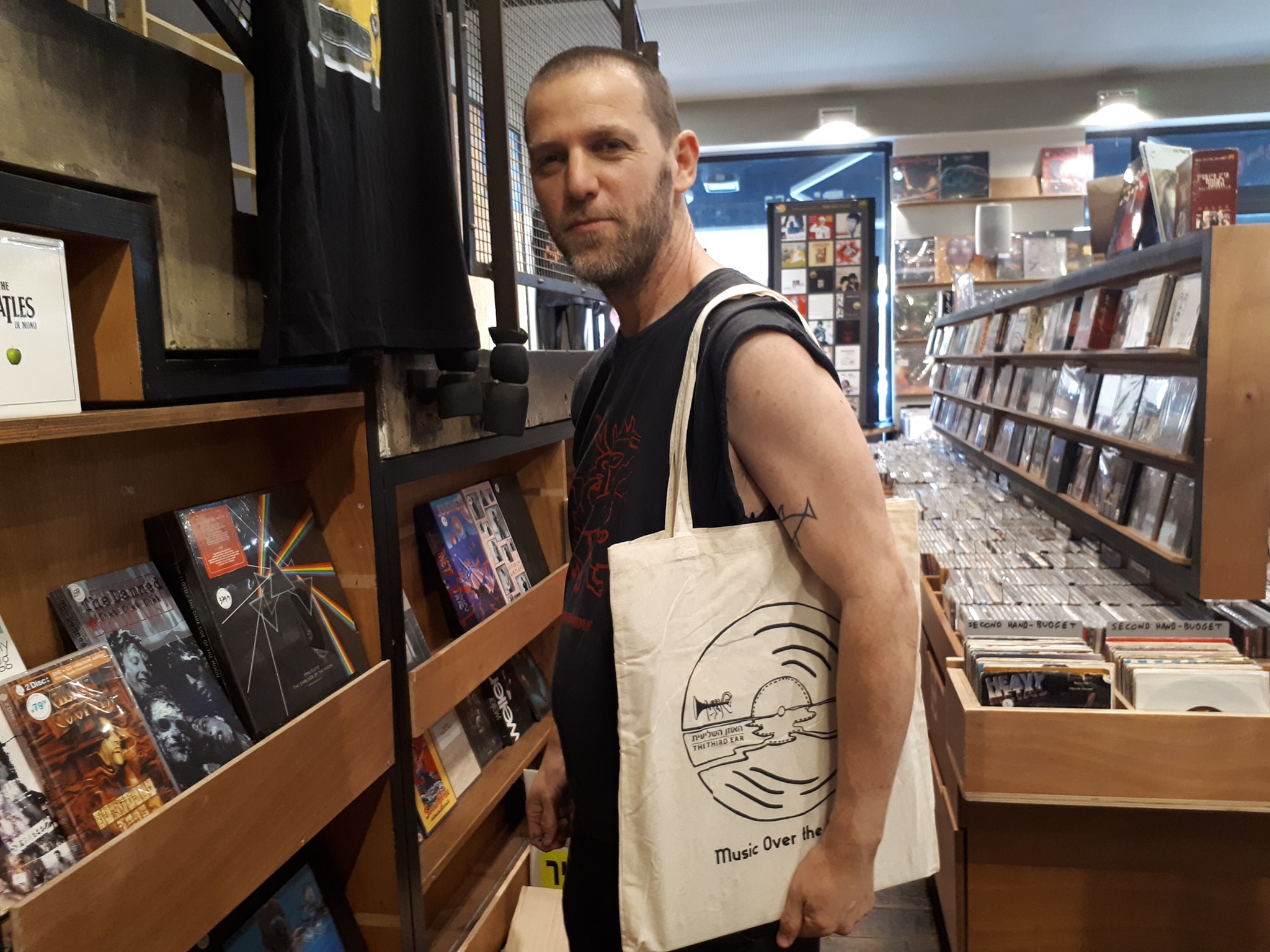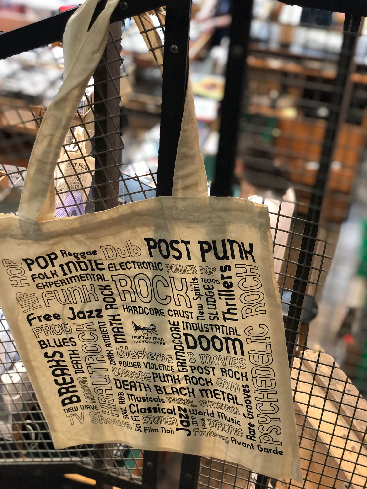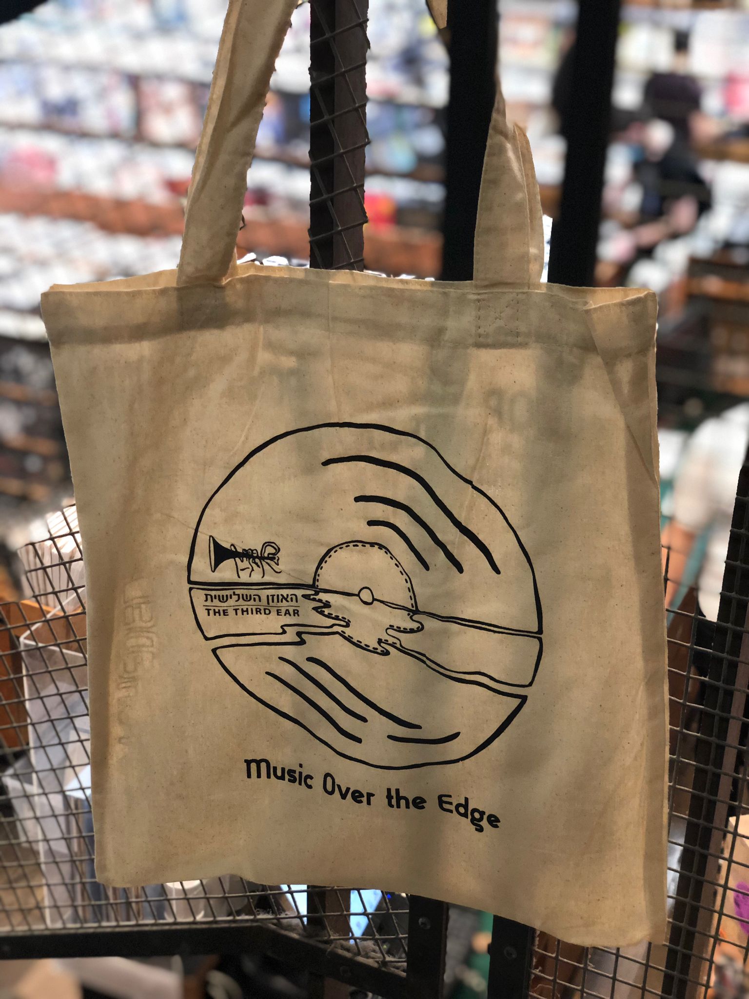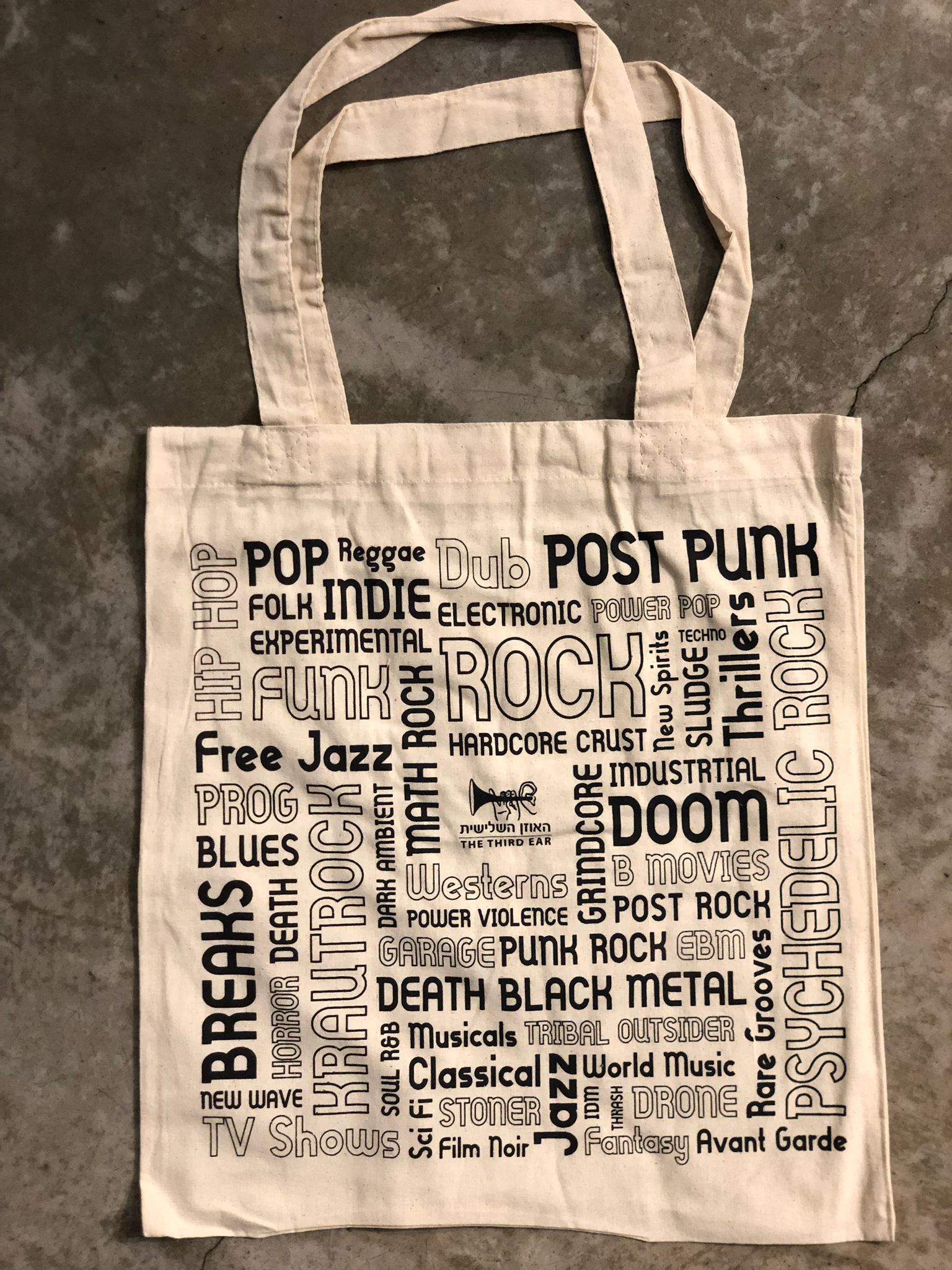 תיק בד מעוצב של האוזן השלישית, איכותי ורב שימושי, עשוי כותנה, יכול להכיל כ-10 תקליטים. מתאים גם לפיקניק, למכולת או לים